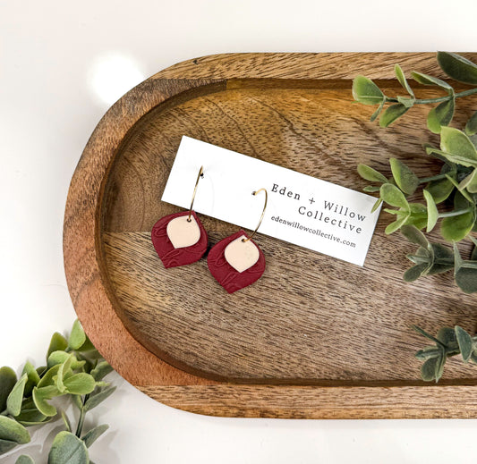 Burgundy Maple Leaf Earrings – Handmade Polymer Clay Fall Hoops
