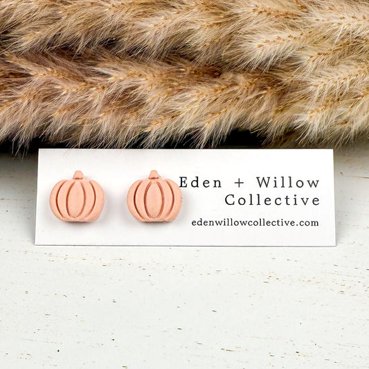 Pink Pumpkin Earrings – Handmade Clay Studs for Cozy Fall and Autumn Everyday Wear