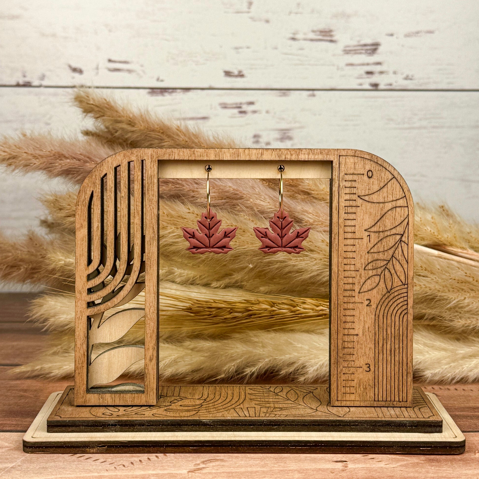 Burgundy Maple Leaf Earrings – Handmade Polymer Clay Fall Hoops